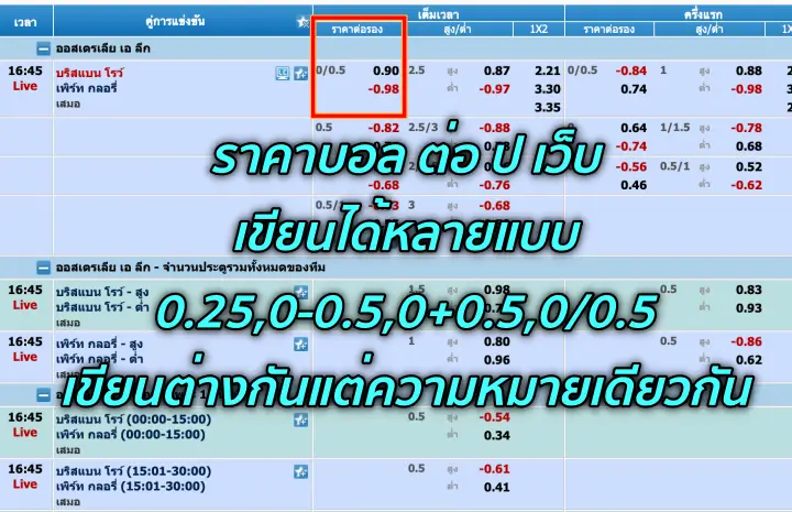 ราคาบอลต่อ ป มันคือราคา เสมอควบครึ่ง ที่สามารถเจอได้ทั้งในเว็บและเล่นกับทางโต๊ะบอลทั่วไป โดยราคานี้มันสามารถเขียนได้หลายแบบ เมื่อมันอยู่ในเว็บ นักเดิมพันหลายท่านอาจจะยังไม่รู้ว่า ราคานี้ เขียนว่าอะไรบ้าง ไปดูกันต่อ
