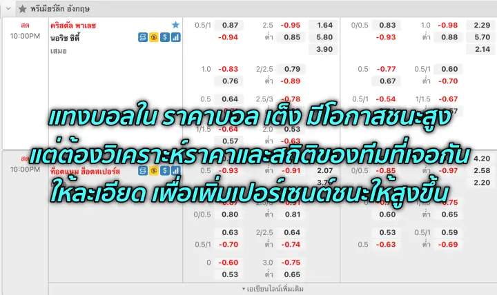 โดยให้ท่านวิเคราะห์จากสถิติต่างๆ ฟอร์มการเล่นตัวผู้เล่นต่างๆที่ลงสนาม ดูราคาว่าเล่นราคาไหนแล้วได้เปรียบ วิเคราะห์เป็นโอกาสชนะสูง ที่สำคัญเลยเวลาเล่นต้องมีสติ ดูว่ากดเงินแทงถูกต้องหรือไม่ กดขาดหรือกดเกินหลักไปหรือป่าว