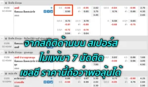 การดูราคาว่าราคาไหนน่าเล่นนั้น ให้เลือกดูไปถึงค่าน้ำด้วย อย่างในรูปที่ทีม เชลซี ต่อ ครึ่งลูก แล้วได้ค่าน้ำเต็มๆ หลายท่านเองก็คงจะโดเล่น เชลซี กันเป็นแน่แท้ แต่ถ้ามองให้ดีๆ ถ้า เชลซี จะชนะจริงๆ ทำไมโต๊ะให้ค่าน้ำเต็ม ทำไมไม่ให้ค่าน้ำน้อยลงมาล่ะครับ